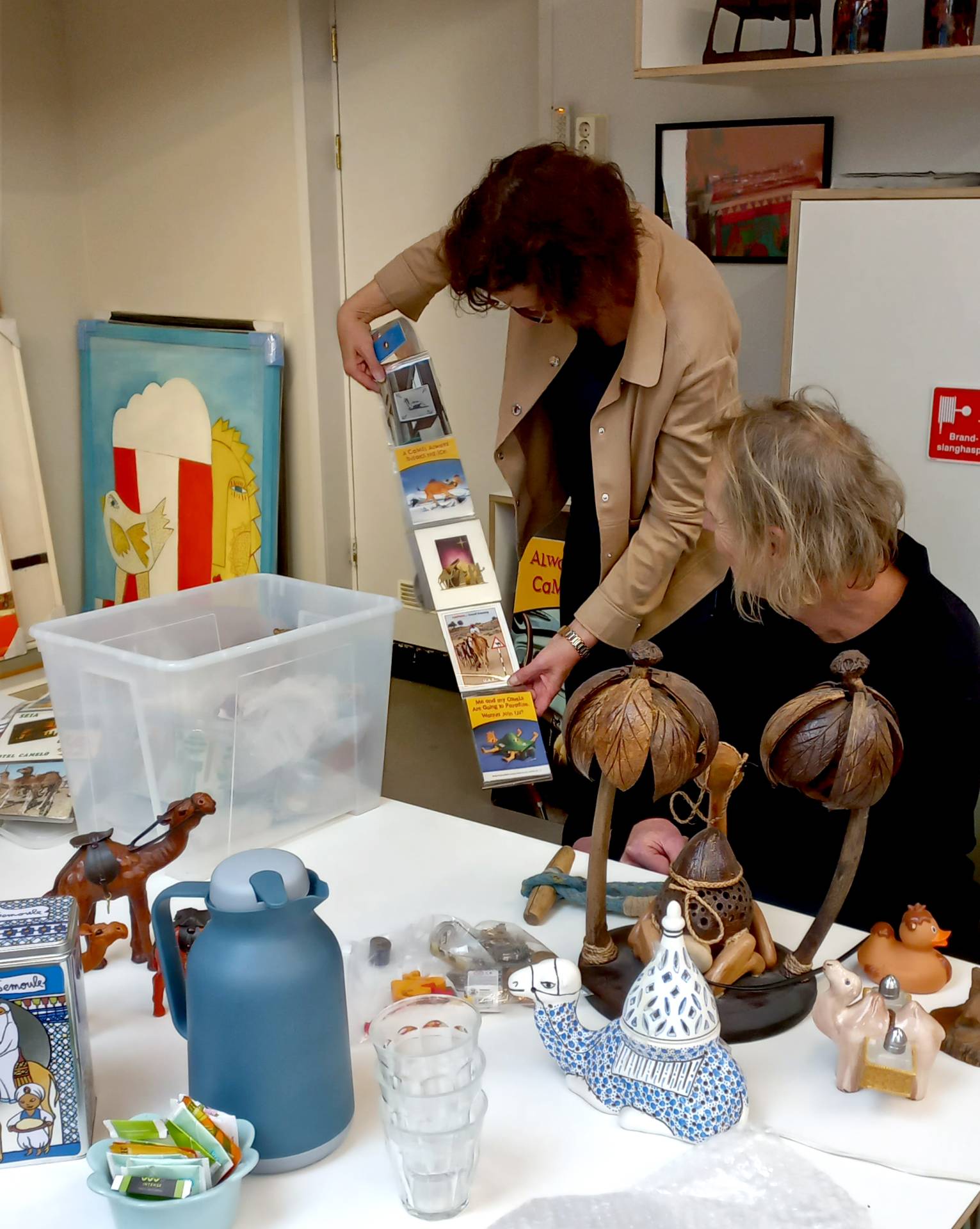 Haar eerste kameel kocht ze in maart 1989 in Egypte, de plek waar de liefde voor het woestijndier is begonnen en waar ze meerdere keren per jaar naar toe gaat. Nu heeft ze ze al in allerlei maten en vormen: zoals pluchen handpoppen, sieraden, theepotten, lampen, kussens, tasjes, knuffels, postkaarten, boekjes en ga zo maar door. Wat zijn wij benieuwd naar het eindresultaat!