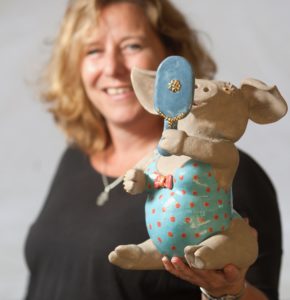 Ineke van Eden is al jaren een vaste en geliefde verschijning in de Haarlemse kunstwereld. Haar keramiek valt op door een aanstekelijk gevoel voor humor en een onmiskenbaar eigen handschrift. Ze werkt figuratief en haar oeuvre is opvallend divers: van grote, expressieve beelden tot kleine dierendoosjes en alledaags gebruiksgoed. Elk stuk draagt haar signatuur — speels, kleurrijk en gemaakt met oog voor detail. Mensen glimlachen als ze haar werk zien, en dat is precies haar intentie.
