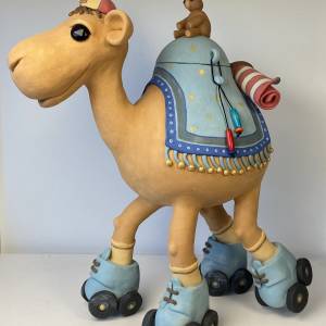 Ineke van Eden is al jaren een vaste en geliefde verschijning in de Haarlemse kunstwereld. Haar keramiek valt op door een aanstekelijk gevoel voor humor en een onmiskenbaar eigen handschrift. Ze werkt figuratief en haar oeuvre is opvallend divers: van grote, expressieve beelden tot kleine dierendoosjes en alledaags gebruiksgoed. Elk stuk draagt haar signatuur — speels, kleurrijk en gemaakt met oog voor detail. Mensen glimlachen als ze haar werk zien, en dat is precies haar intentie.